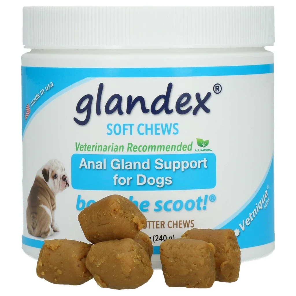 Glandex soft chews zijn speciaal ontwikkeld om anaalklierproblemen bij honden tegen te gaan. Bij iedere ontlasting komt er een beetje inhoud uit de anaalklieren mee naar buiten en op deze manier worden de problemen minder of verdwijnen helemaal.